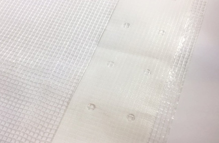 PE Tarpaulin fabric, 14x14/sq.inch, on one side lamination, pre-punched holes on bands